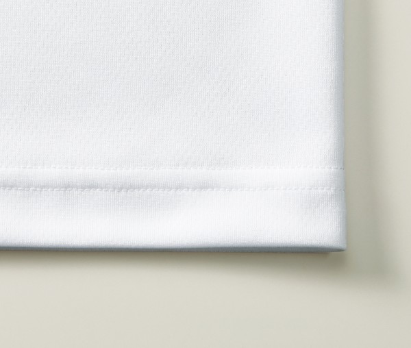 「吸水性」「速乾性」「UV-CUT」を備えスポーツ・アクティブシーンにぴったり。直接肌に触れる面はメッシュ構造になっており、抜群の通気性・吸水速乾性を持ちます。さらに、「4.1オンス」という生地の厚さが快適さに相乗効果を加えます。