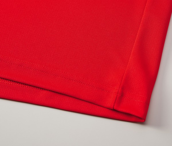 「吸水性」「速乾性」「UV-CUT」を備えスポーツ・アクティブシーンにぴったり。直接肌に触れる面はメッシュ構造に なっており、抜群の通気性・吸水速乾性を持ちます。さらに、「4.1オンス」という生地の厚さが快適さに相乗効果を加えます。